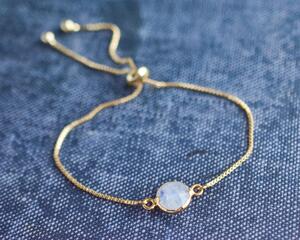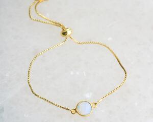 Opalite Gold Bracelet, Opal Dainty Adjustable Layering Brace...