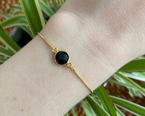 Black Onyx Gold Bracelet, Healing Gemstone Jewelry, Black Sto...