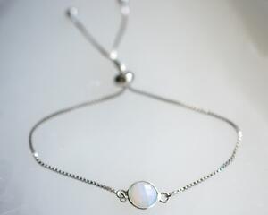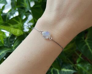 Dainty Silver Moonstone Bracelet, Minimalist Rainbow Moonston...