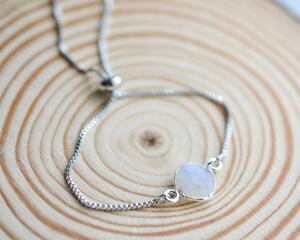 Silver Moonstone Bracelet, Boho Layering Bracelet, Gemstone J...