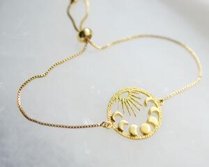 Sun and Moon Phases Gold Bracelet, Adjustable Celestial Brace...