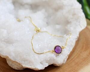 Gold Amethyst Bracelet, Dainty Adjustable Bracelet, February ...