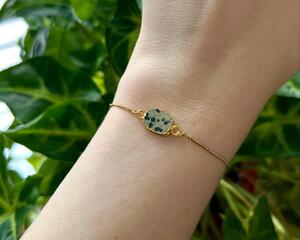Dalmatian Jasper Bracelet, Dainty Gold Gemstone Jewelry, Heal...