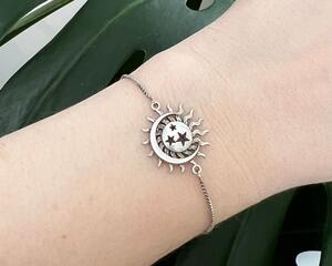 Sun and Moon Phases Silver Bracelet, Adjustable Celestial Bra...
