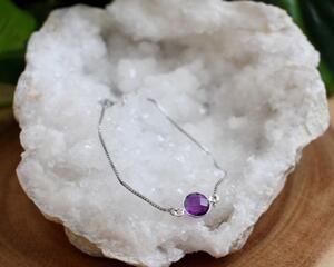 Amethyst Silver Bracelet, Dainty Adjustable Layering Bracelet...